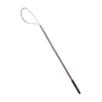 Confeccionado em tubos de alumínio resistentes e cabo de aço de 3,2mm revestido em plástico, para maior proteção do animal, com excelente acabamento. Cabo (Empunhadura) revestido em borracha. Tamanhos: 120 Cm (Fechado) e 186 Cm (Aberto)”. Laço com 30cm de diâmetro.