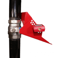 O Bloqueio de Válvulas Esfera em Aço pode ser utilizado em hastes de válvulas de 1 ¼” a 3” (3,1 a 7,6 cm) de diâmetro para bloquear válvulas esfera.