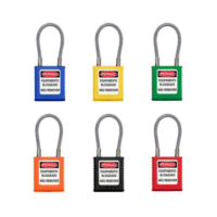 Os Cadeados de Bloqueio e Travamento com Corpo Plástico e Haste de Cabo de Aço oferecem maior segurança ao funcionário já que o corpo e a haste de cabo de aço deste cadeado não são condutivos e o cilindro de chave única evita que a eletricidade seja conduzida da haste à chave no momento em que ela é inserida. Esses cadeados também apresentam maior resistência à altas temperaturas, corrosão, produtos químicos e violação.