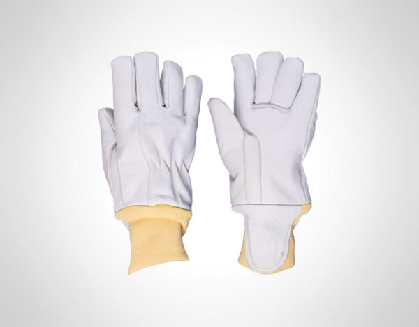 Luva de proteção para bombeiro, confeccionada em couro vaqueta e forro fixo em aramida, laminado com membrana de PTFE para proteção em atividades com alta temperatura. Possui reforço entre polegar e indicador, protetor de veia, com punho em malha de para-aramida e elástico em seu dorso.